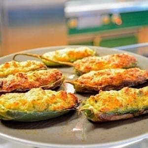 The filled and unbaked jalapeños can be covered and refrigerated for up to 1 day. Add 3 minutes to baking time.